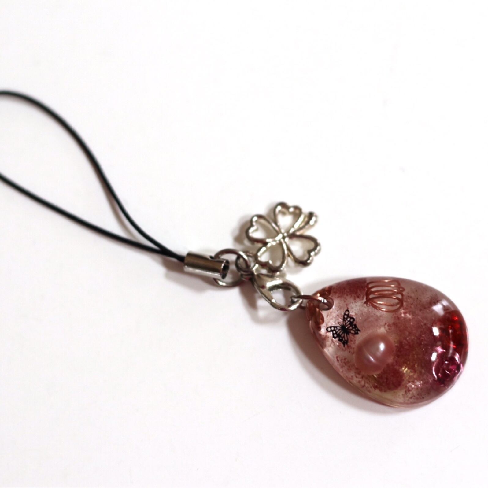 オルゴナイト☆*しずく形☆*ストラップ☆*ピンクエピドート✳︎薔薇✳︎蝶☆*