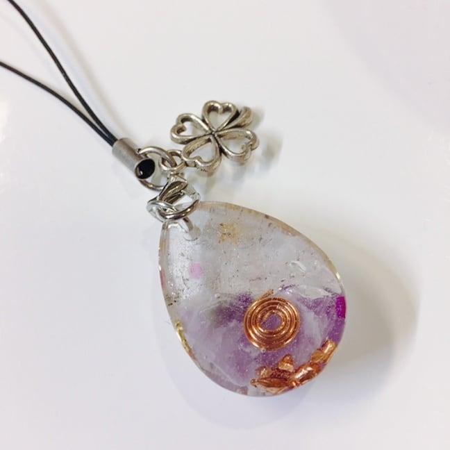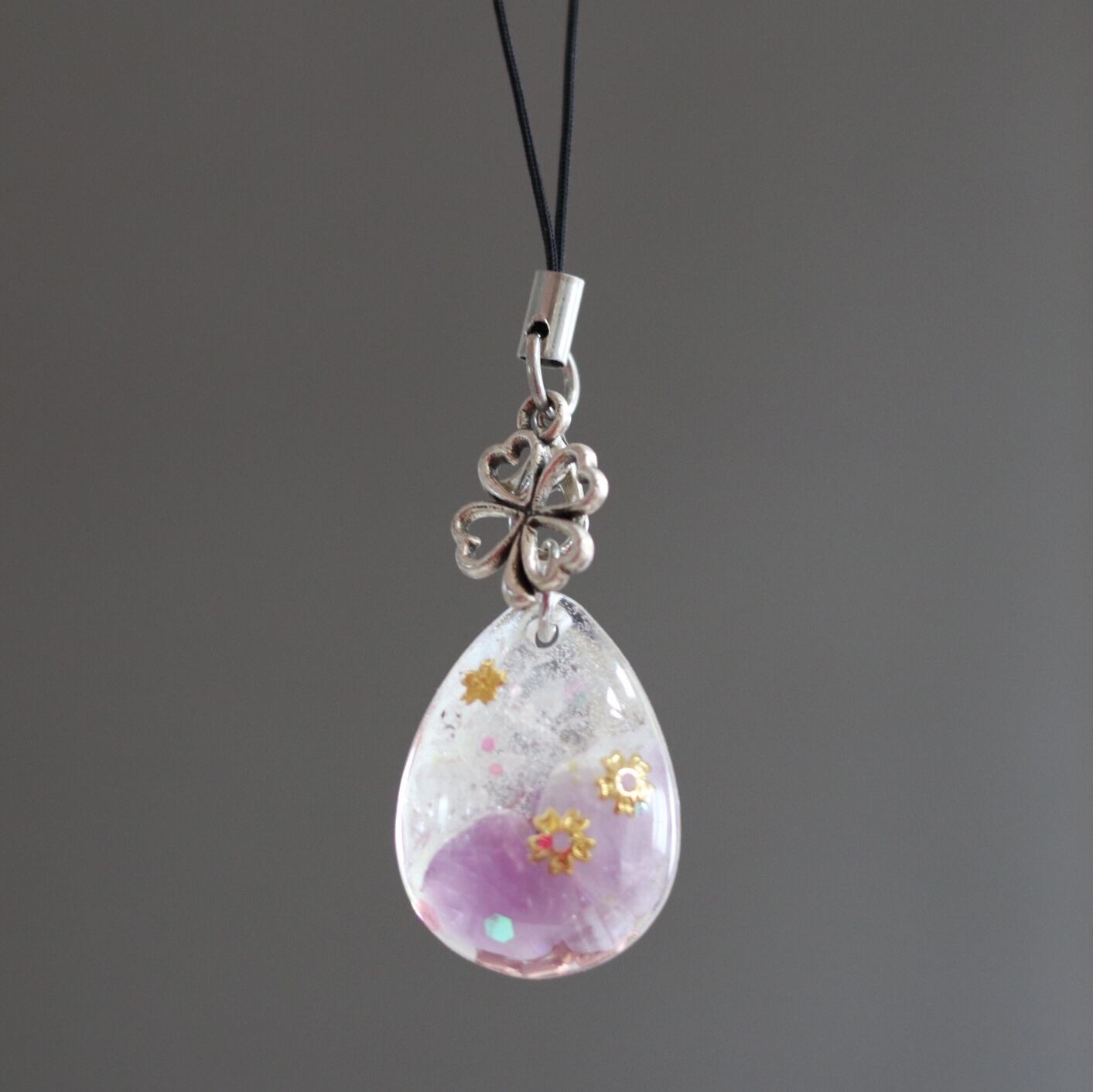 しずく型オルゴナイト☆*。ストラップ☆*アメジスト✳︎桜☆*