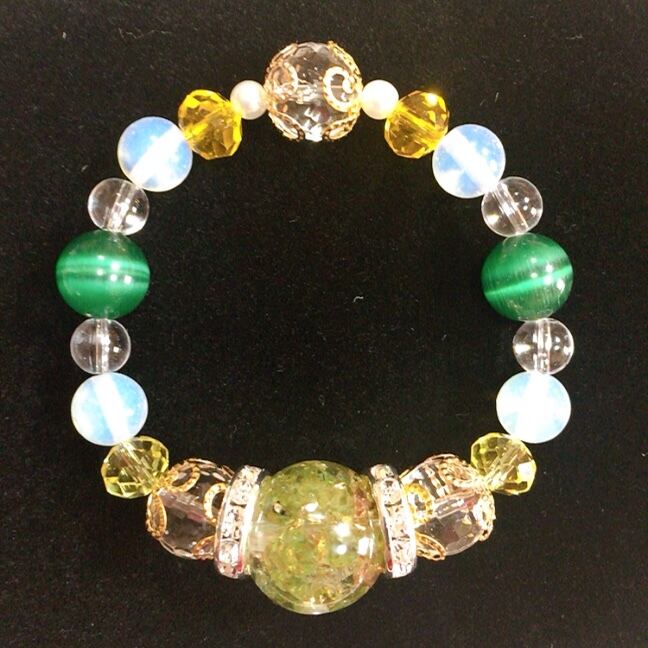 オルゴナイト♡ブレスレット♡8月誕生石ペリドット♡緑×黄癒しカラー♡小さめ