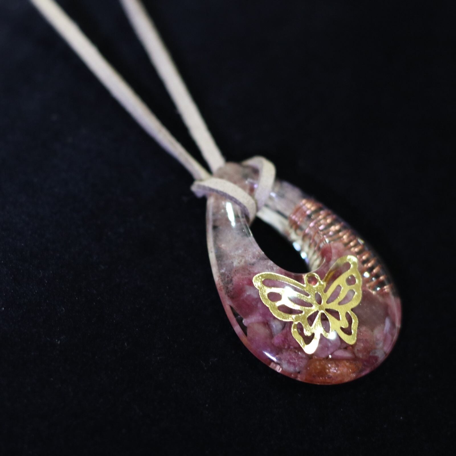 しずく型オルゴナイト ペンダント♡*゜ピンク色の天然石♡*゜