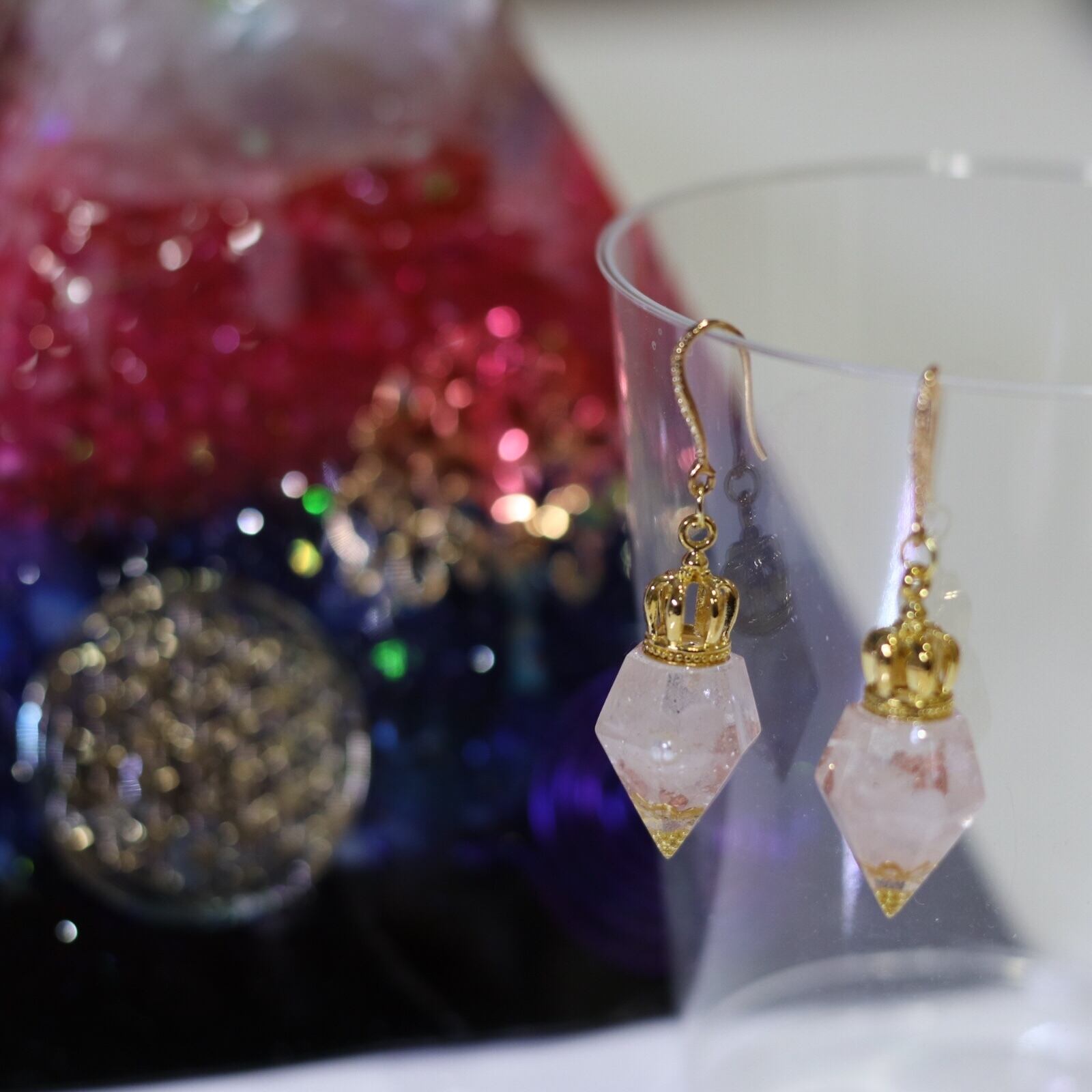 ダイヤ形☆* オルゴナイト ピアス♡*゜ローズクオーツ♡恋愛運アップ♡*゜