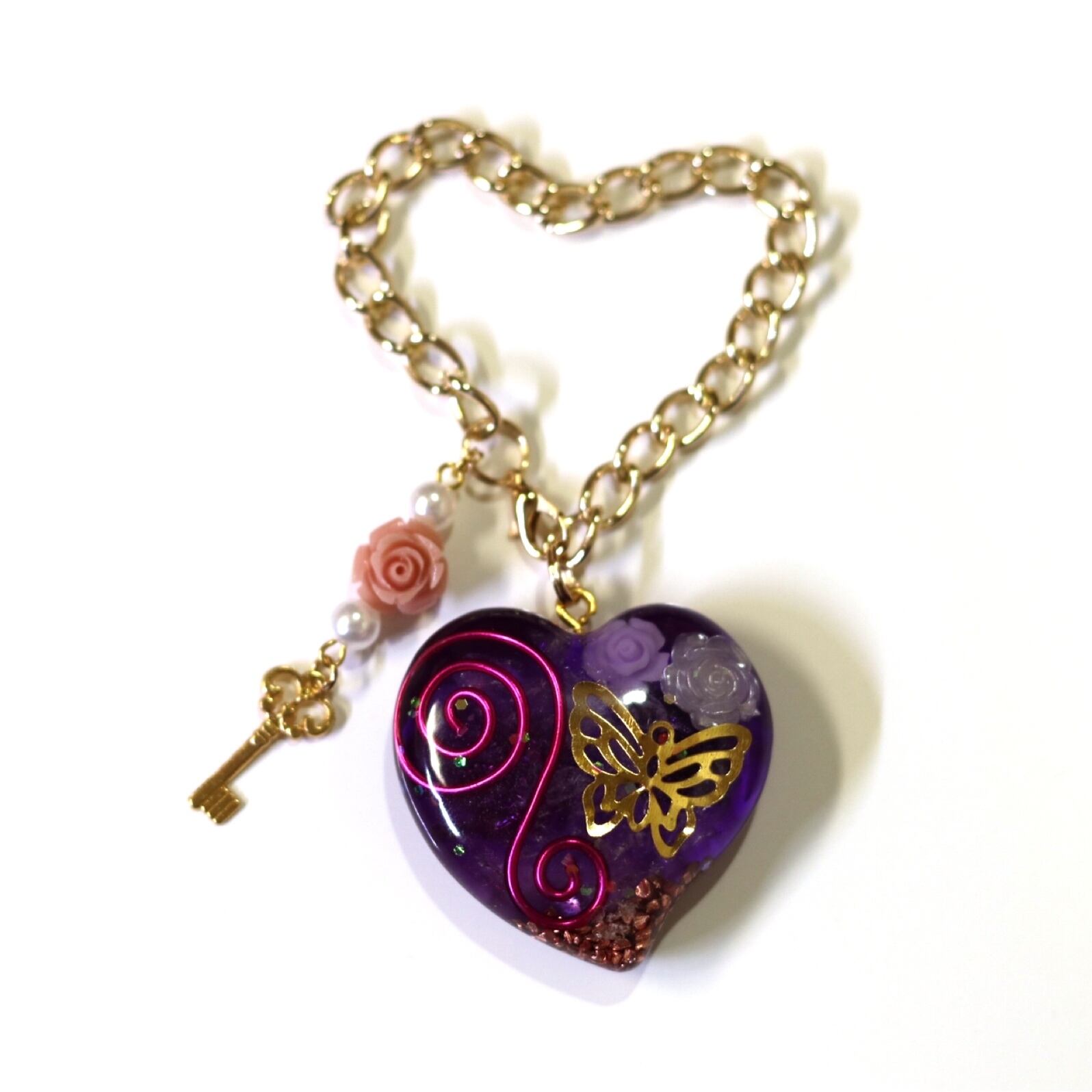 ぷっくりハート♡オルゴナイト*バックチャーム☆紫