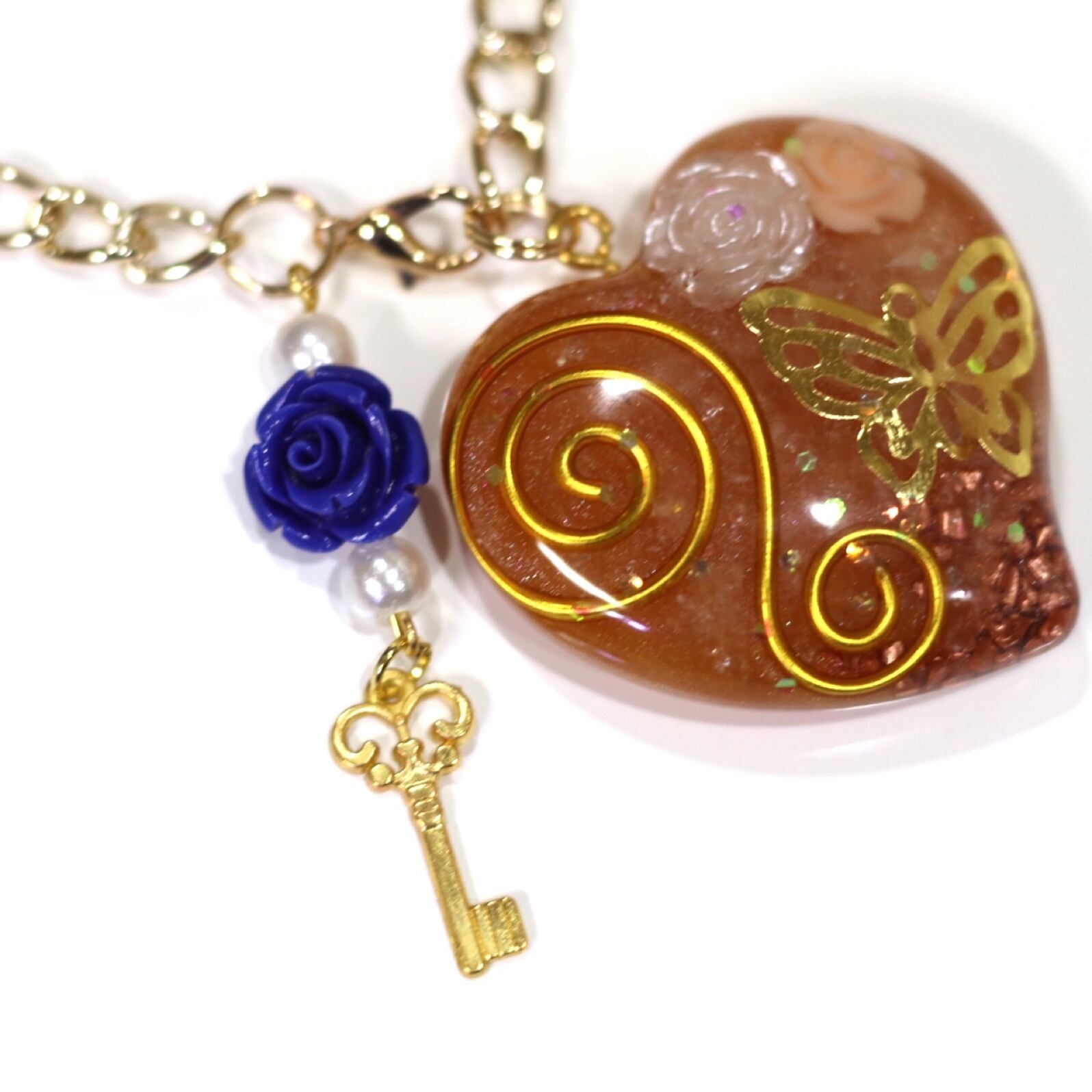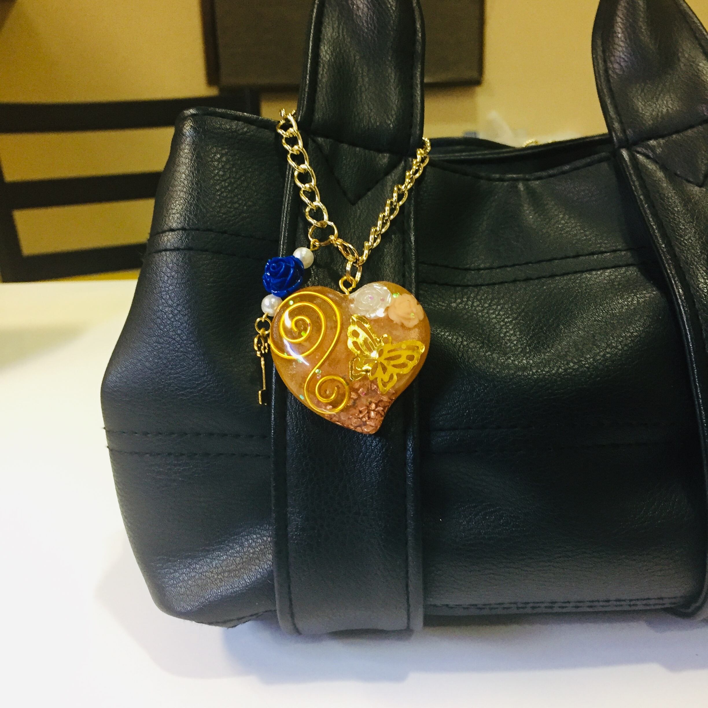 ぷっくりハート♡オルゴナイト*バックチャーム☆橙黄色