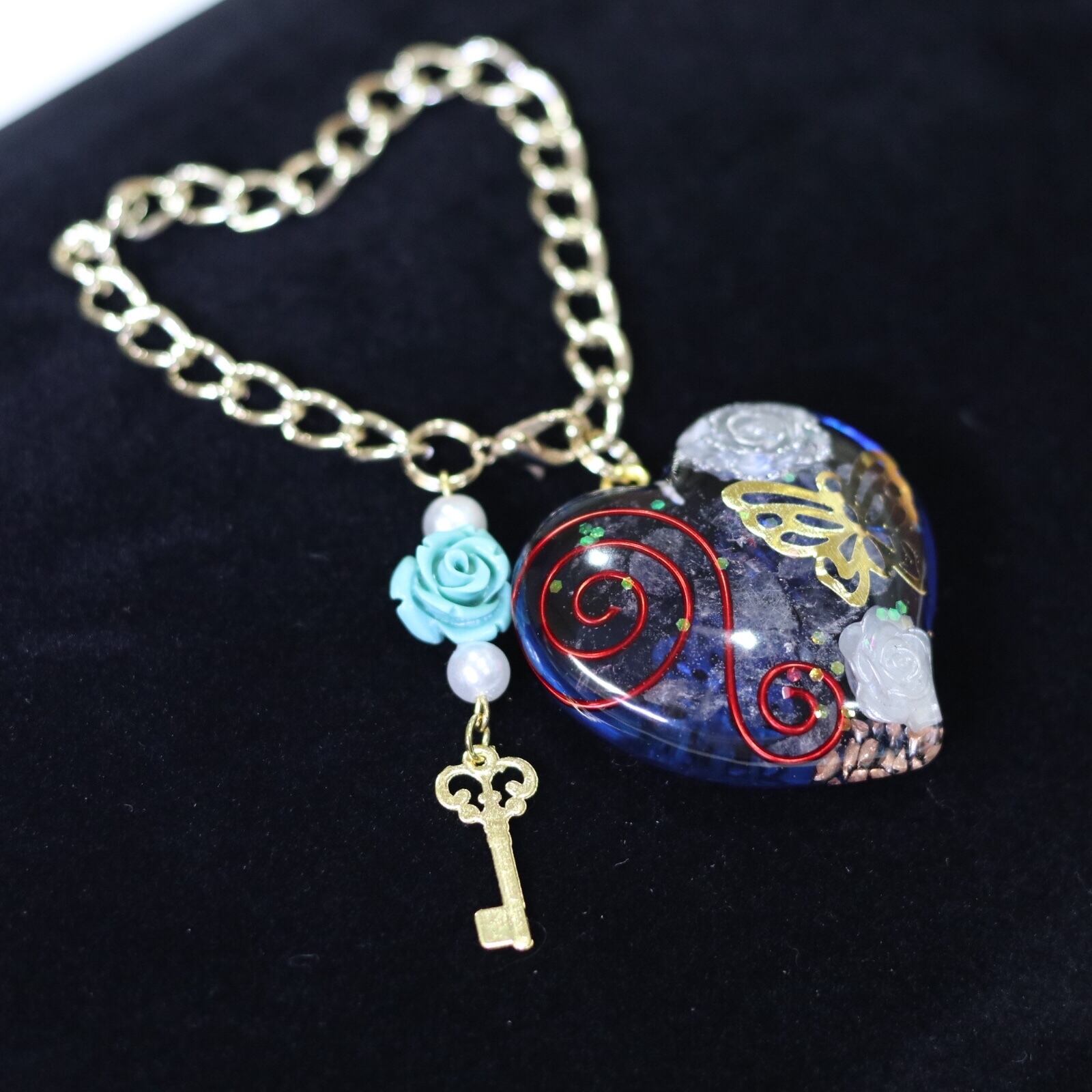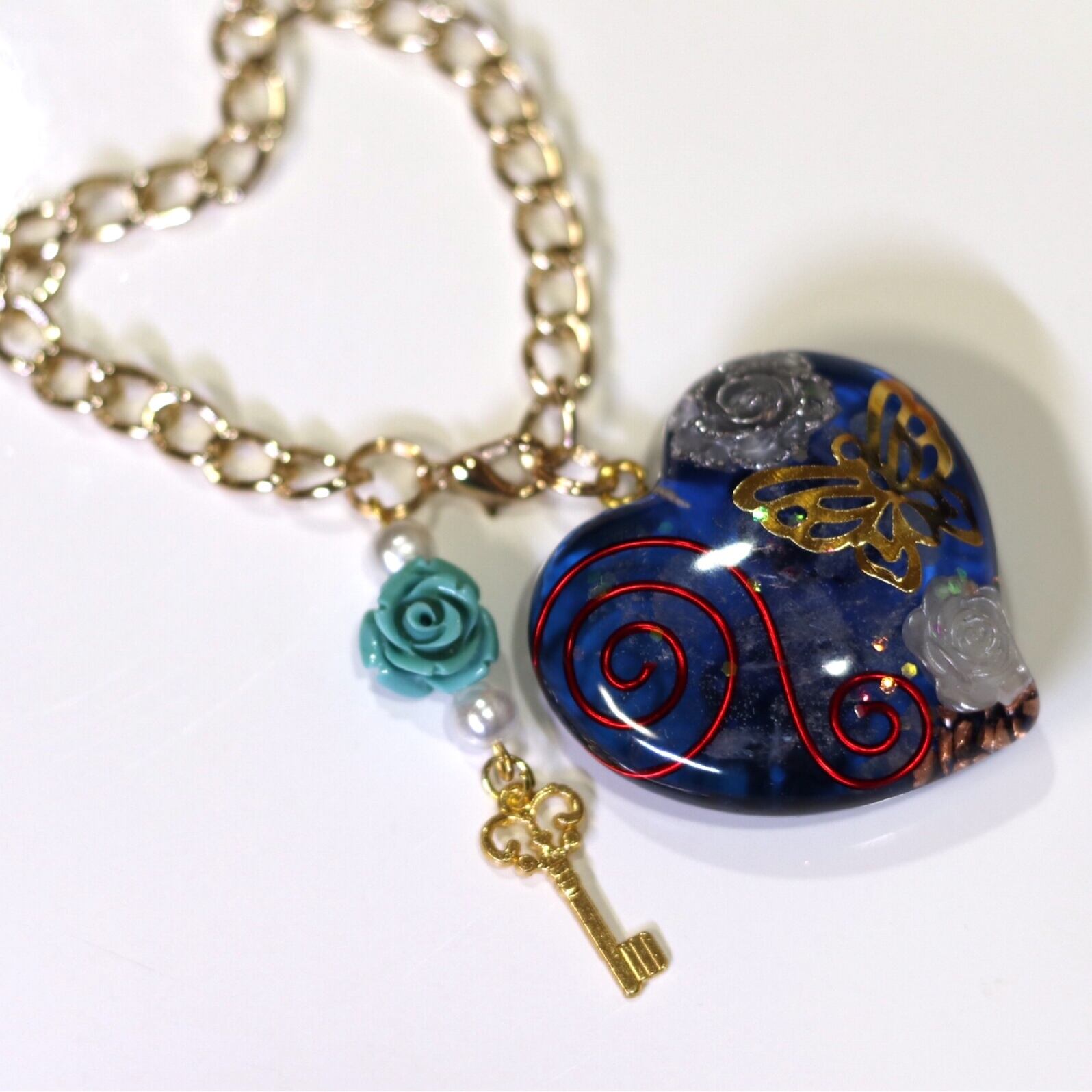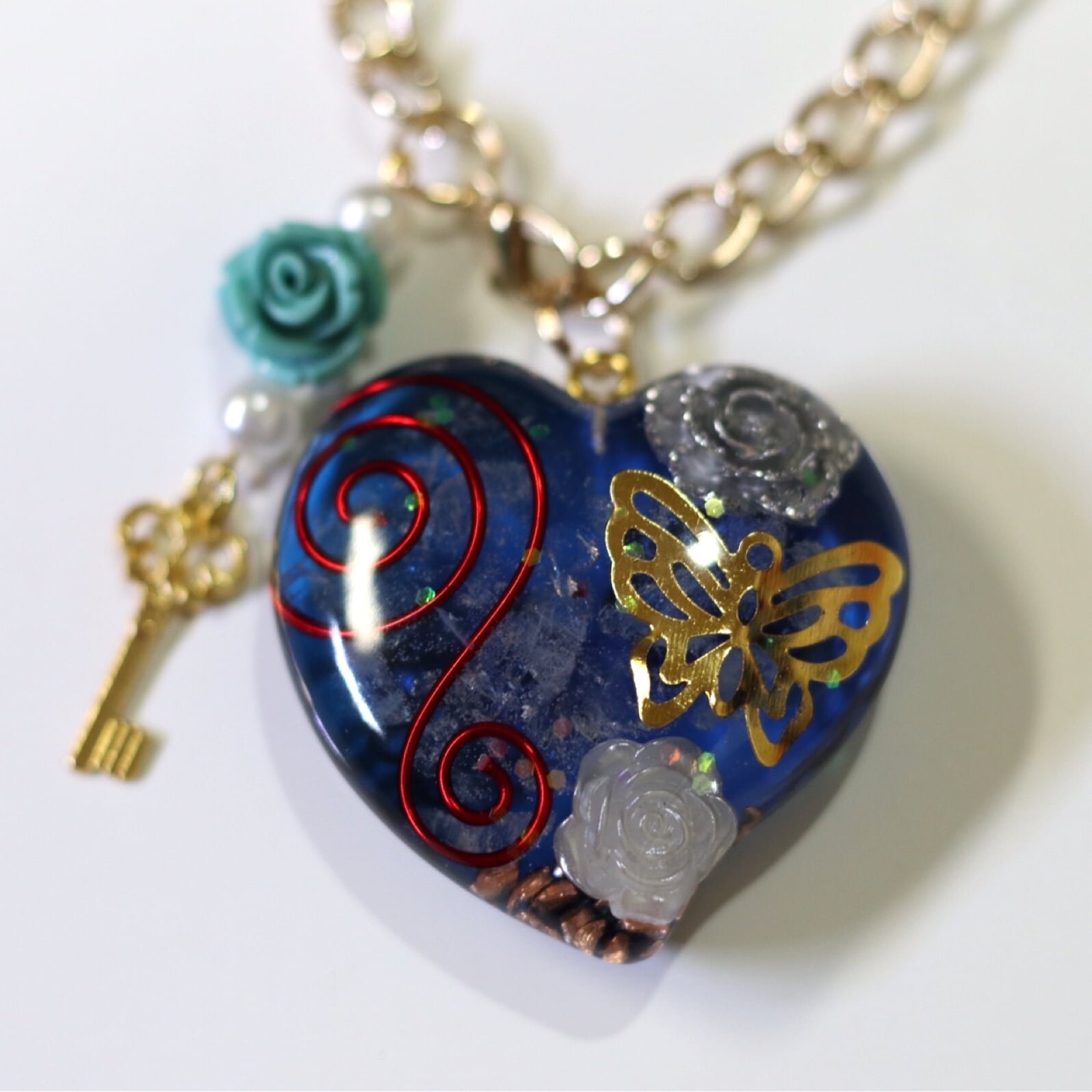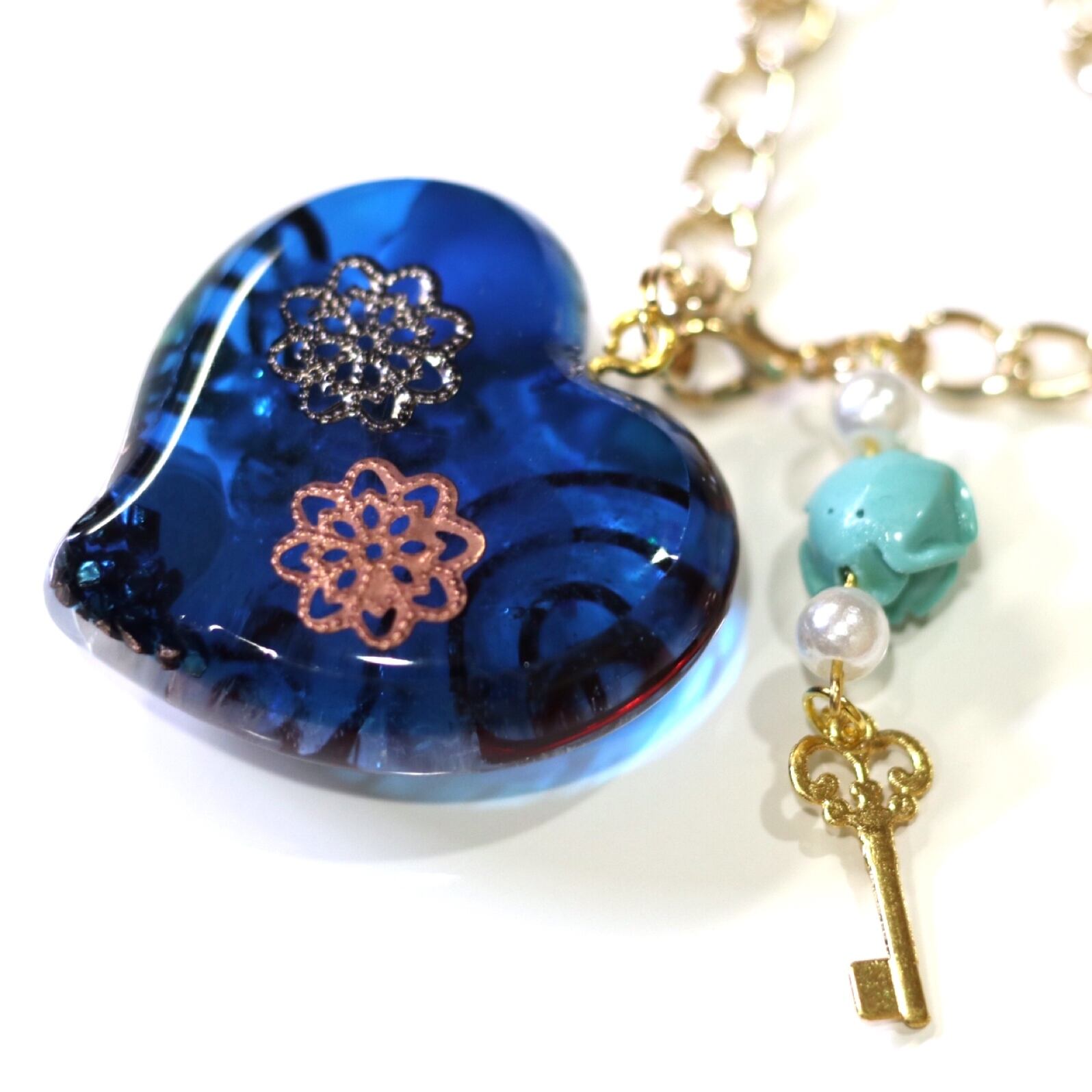 ぷっくりハート♡オルゴナイト*バックチャーム☆藍色