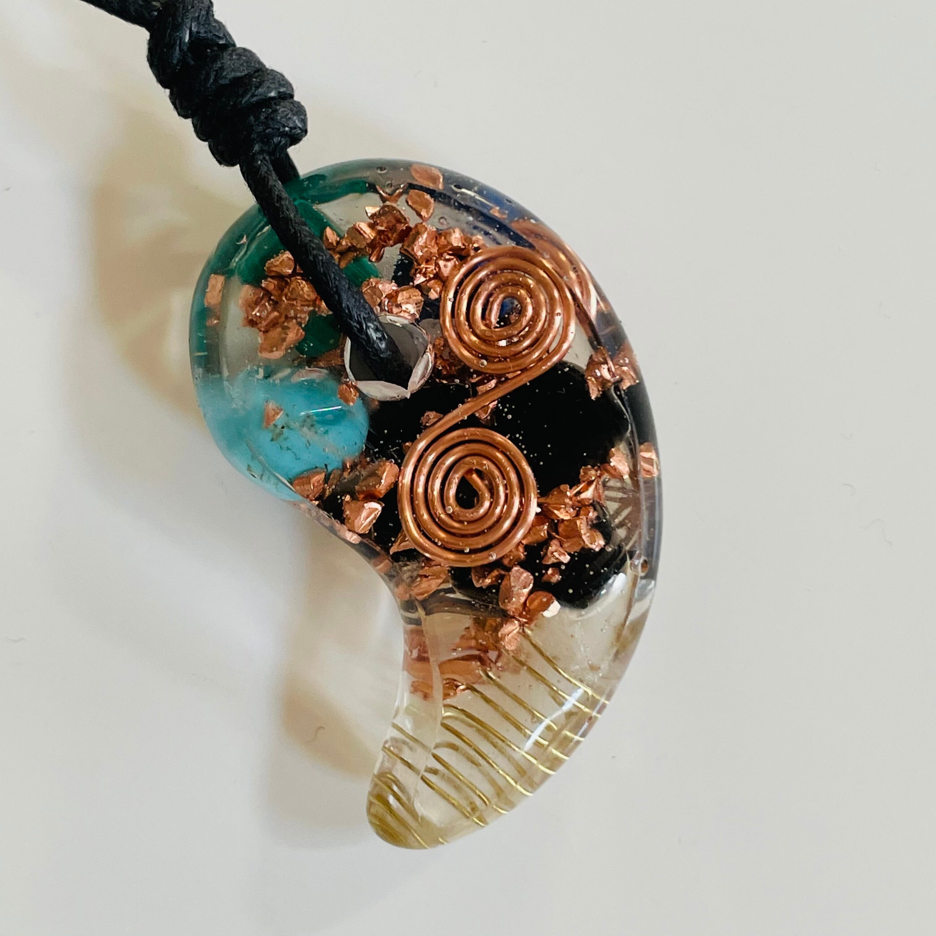 勾玉のオルゴナイトをペンダントにしました⭐︎
