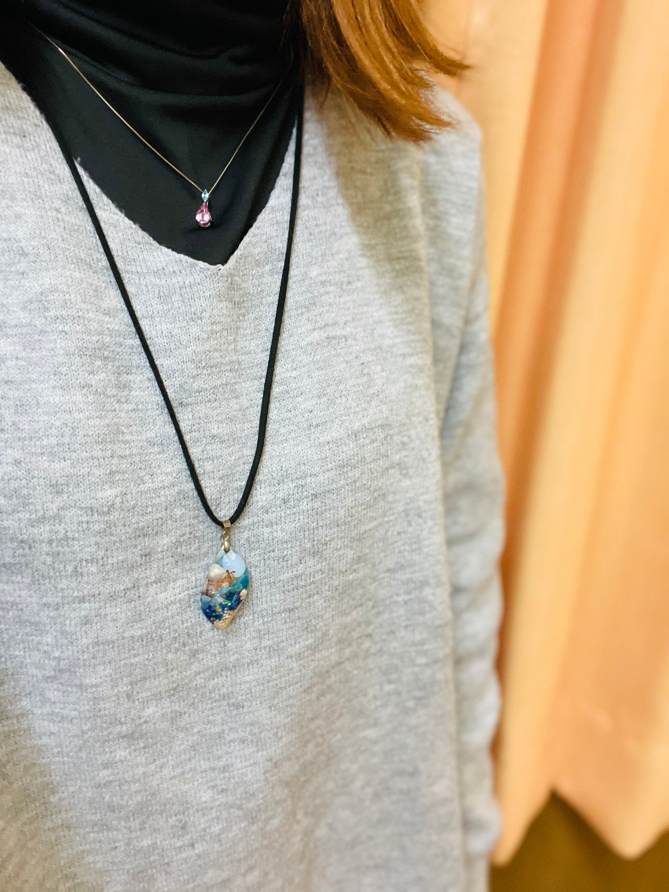 星の砂入り*海イメージ*オルゴナイトペンダント*ホヌ