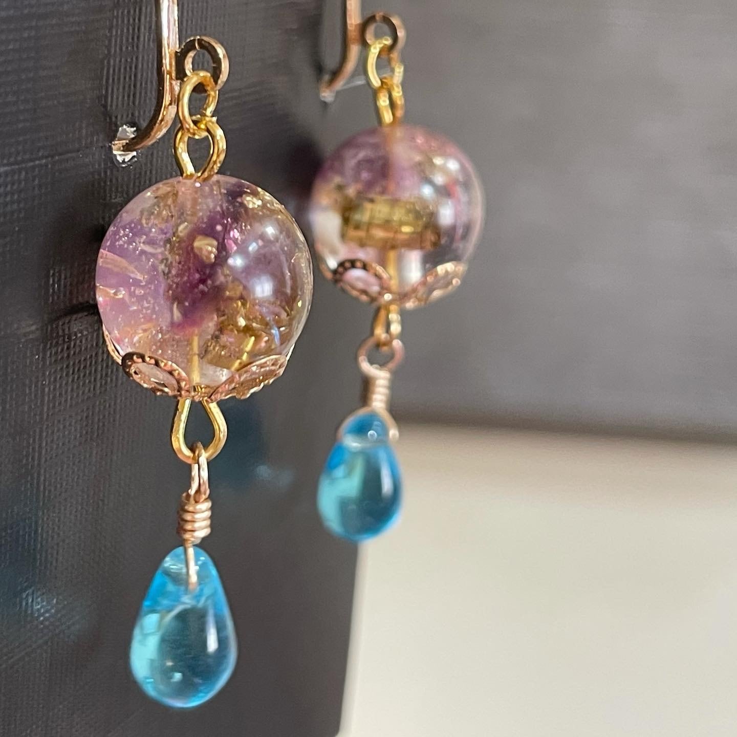 アメジストの球体のオルゴナイトをイヤリングにしました♡
