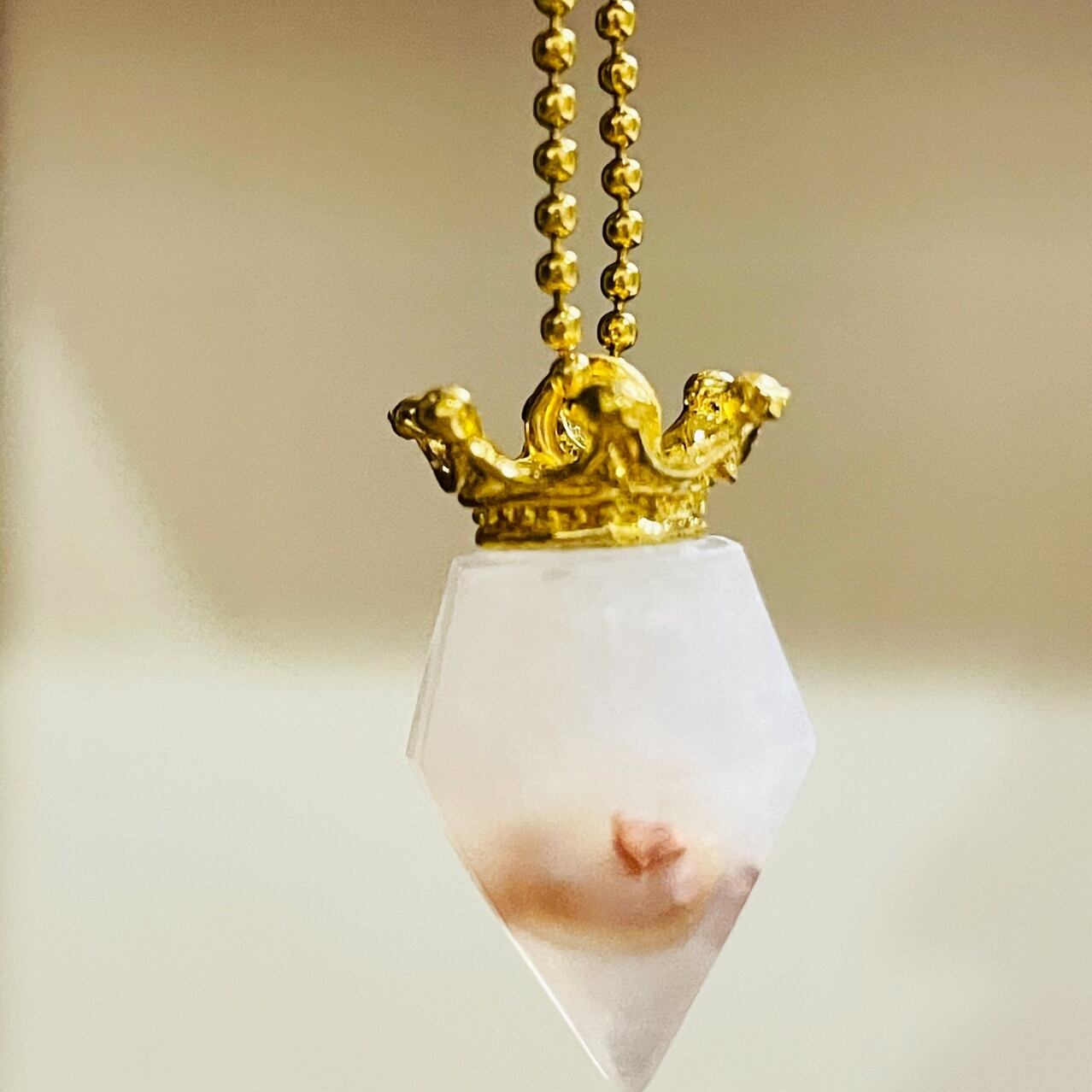 小さいダイヤ型オルゴナイトをキーホルダーにしました♡