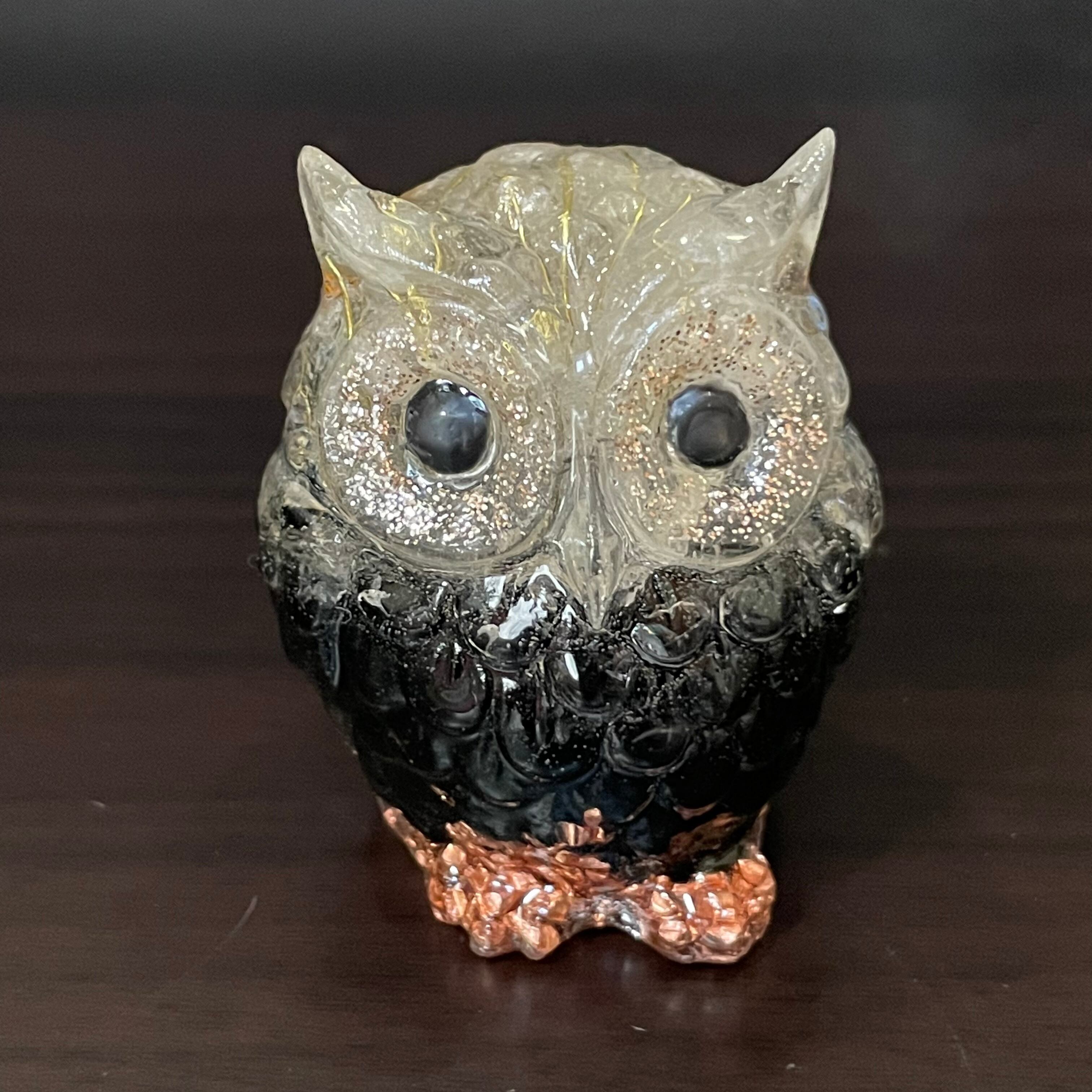 ふくろうのオルゴナイト♡魔除け・厄除け♡モリオン♡
